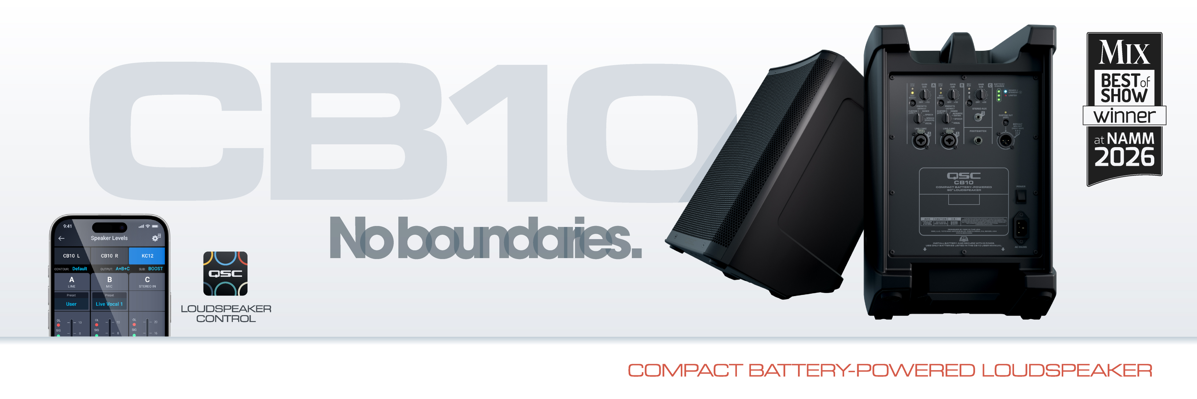 QSC announced the debut of three new innovations: The CB10 Compact Battery-Powered Loudspeaker System, the LS218 Double 18-inch active subwoofer, and the QSC Loudspeaker Control app.