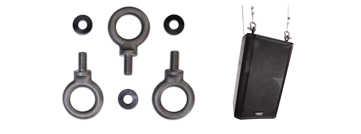 M10 steel eyebolt kit for suspending QSC K.2 Series™, legacy K Series Active loudspeakers.