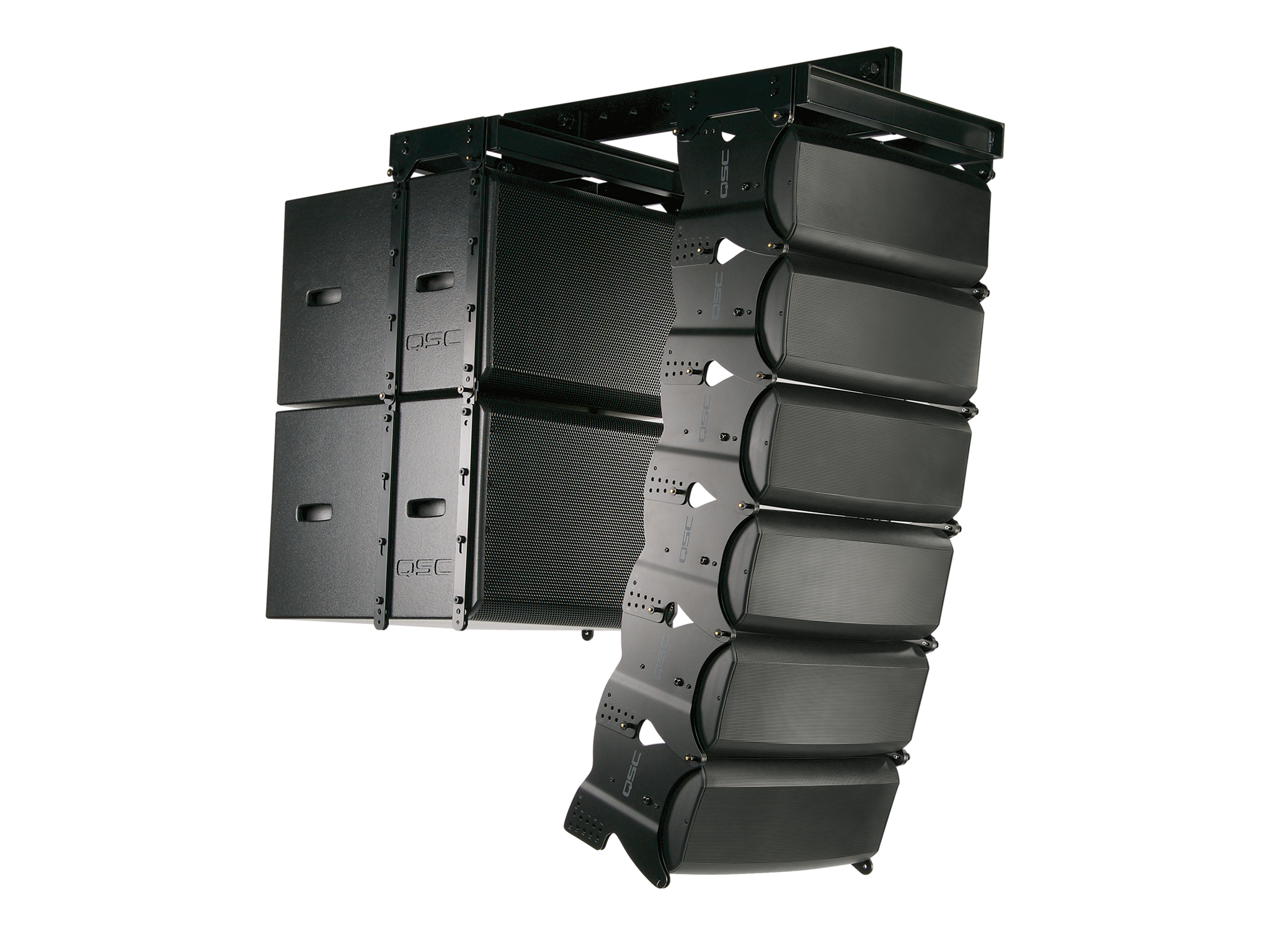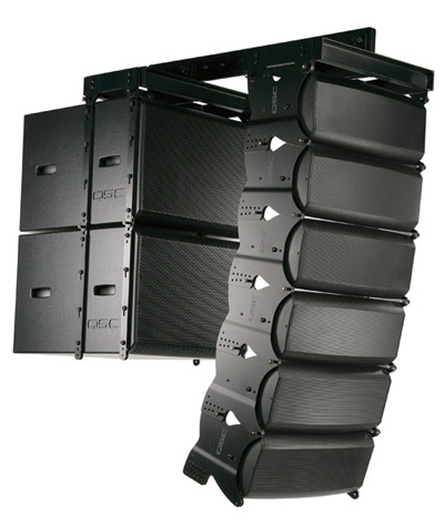 Front Angle image of 2 KLA 181 subs with 3 KLA 12 loudspeakers