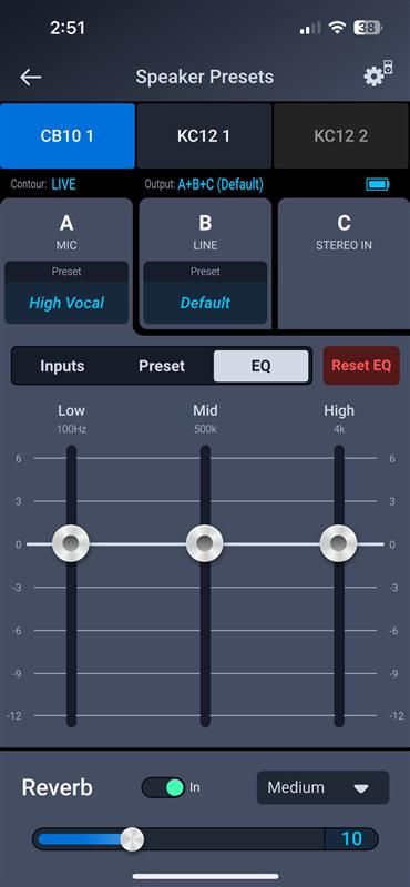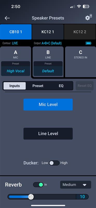 Loudspeaker Control App Image - CB10 EQ, Reverb