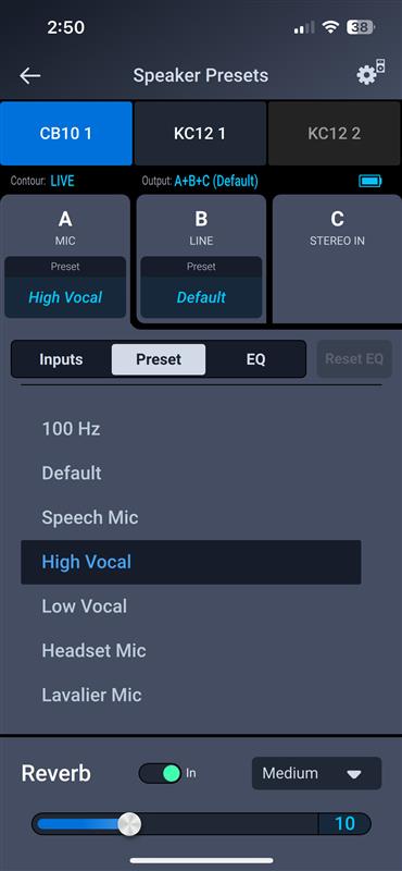 Loudspeaker Control App Image - CB10 Presets