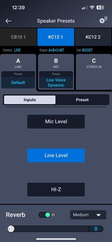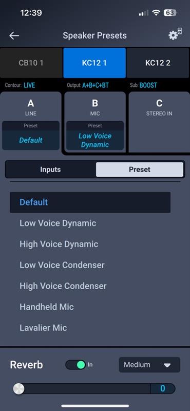 Loudspeaker Control App Image - KC12 Presets