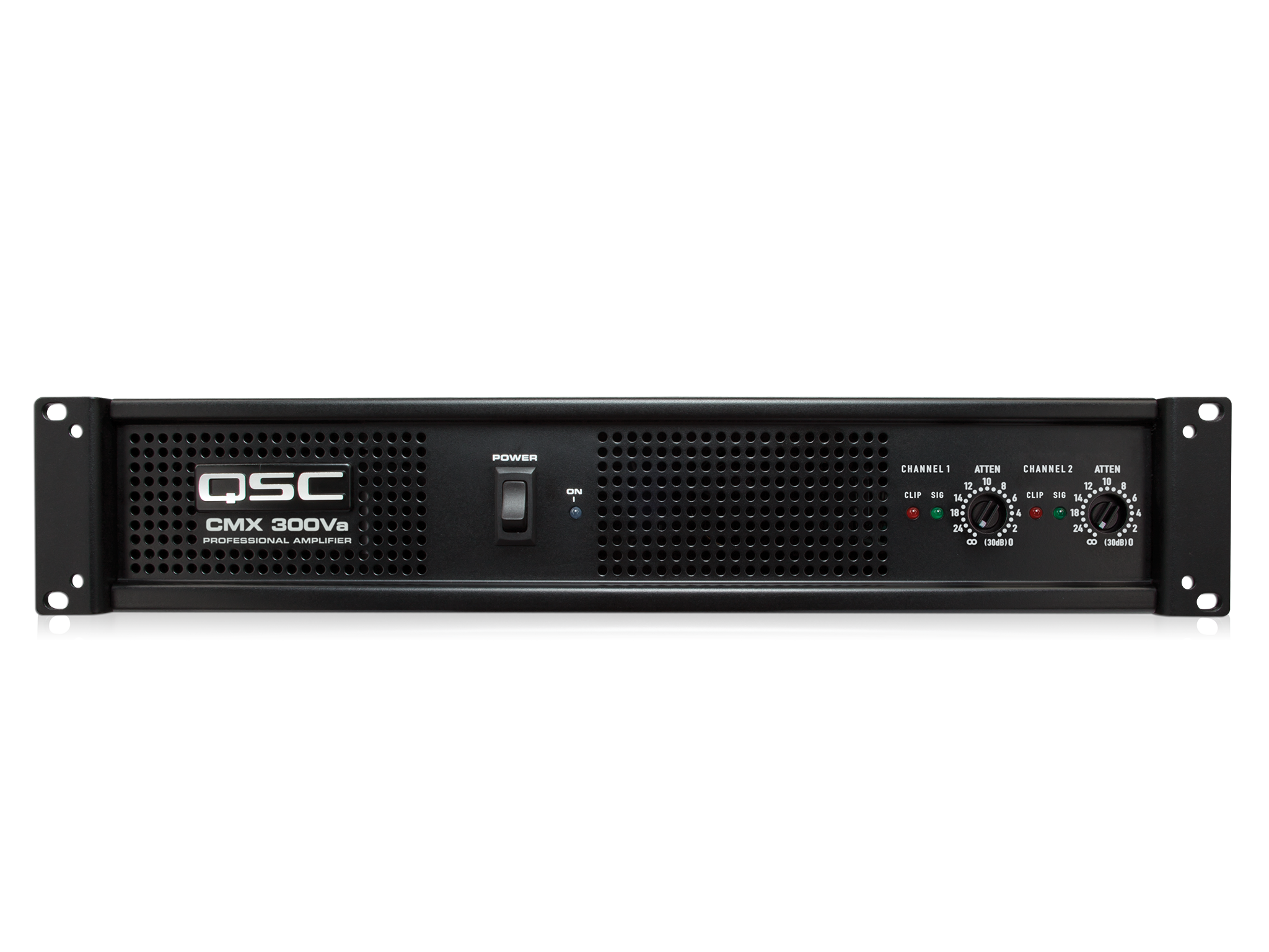 Front panel view of the CMX300Va power amp, from the value CMXa series of contractor/install models.